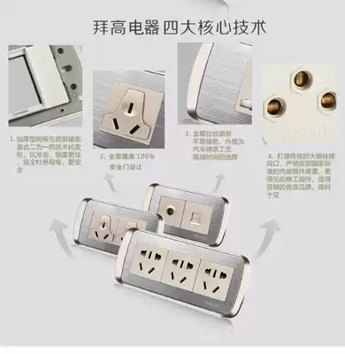 Baigao switch socket 118 type concealed household three-position nine-hole fifteen-hole multifunctional combination champagne gold panel