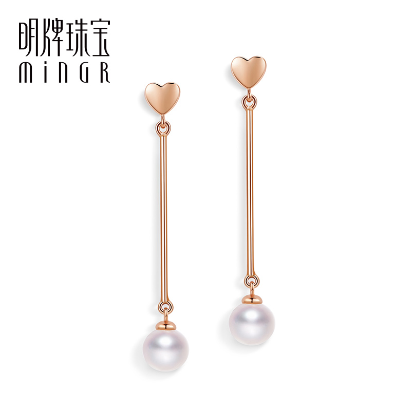 Ming jewelry 18K gold earrings Cherry blossom beads series pearl love drop earrings Female rose gold CSH0133