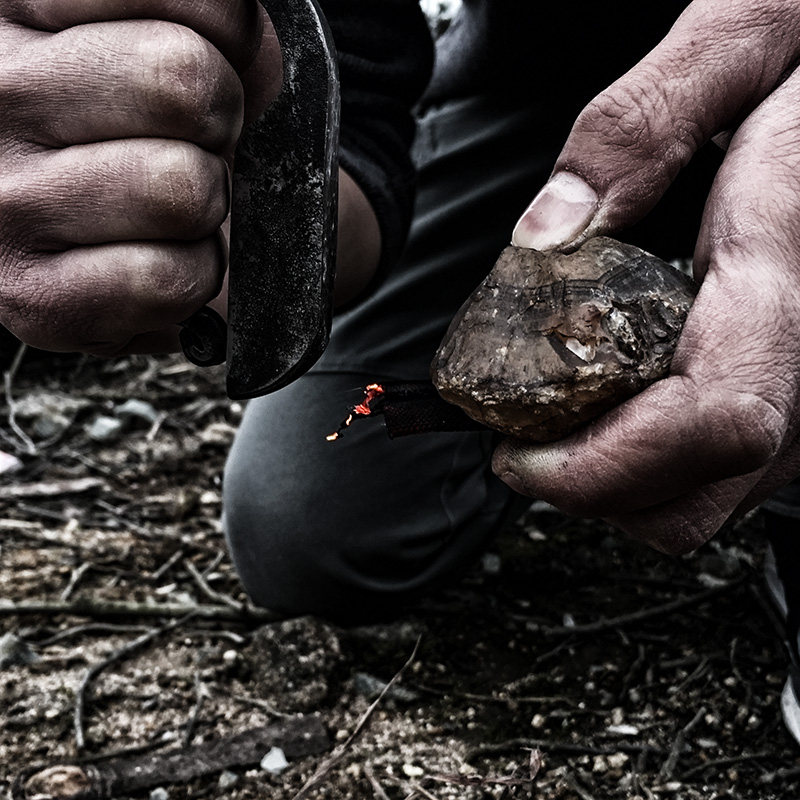 Fire sickle take fire Old-fashioned fire sickle set fire sickle outdoor field flint flint original rough carbon cloth to fight fire