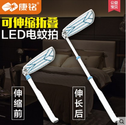 Retractable and foldable rechargeable mosquito killer with LED electric mosquito swatter Kangming KM380 extended electric mosquito swatter