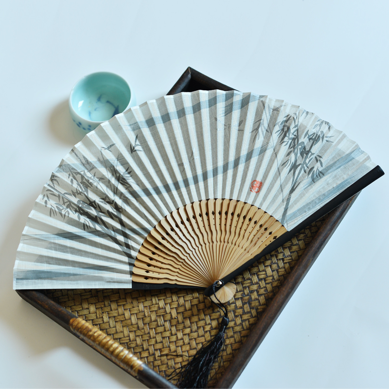 Zen Cotton Hemp Jade Bamboo Folding Fan man's small folding fan Chinese Wind Day style