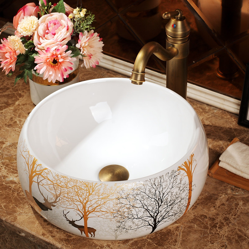 European-style ceramic washbasin countertop basin washbasin art basin wash make-up room household oval washbasin - Taobao