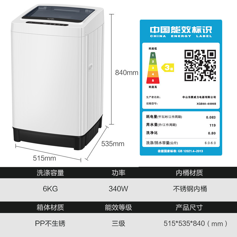 Power XQB60-6099B 6kg kg fully automatic wave wheel student dorm room rental fully automatic washing machine