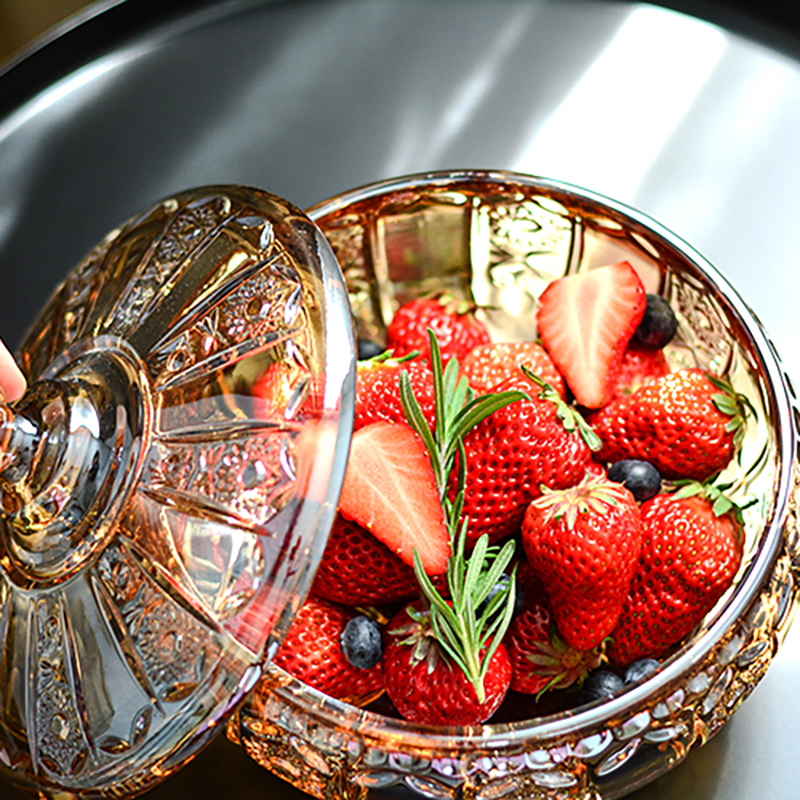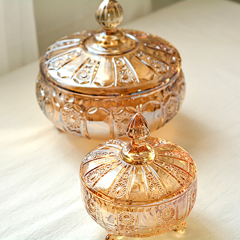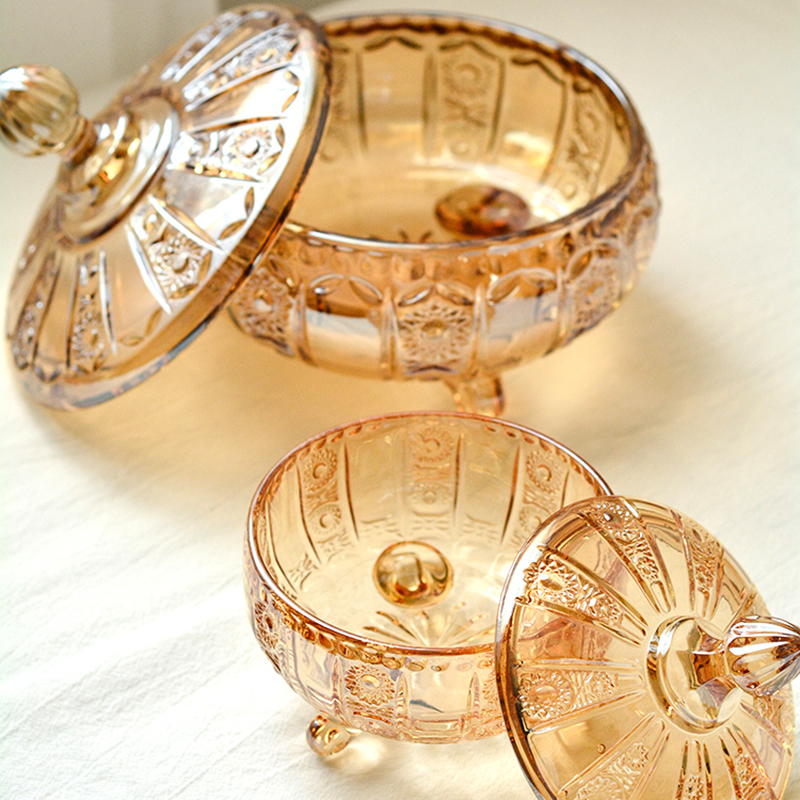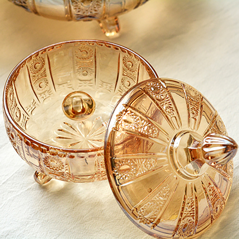 Luxury amber yellow Roman candy jar retro food storage jar storage jar decoration coffee table front desk candy jar
