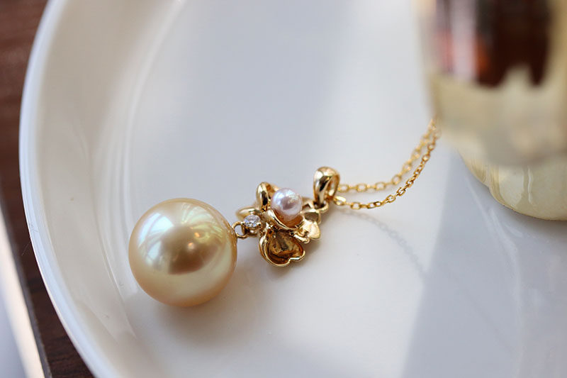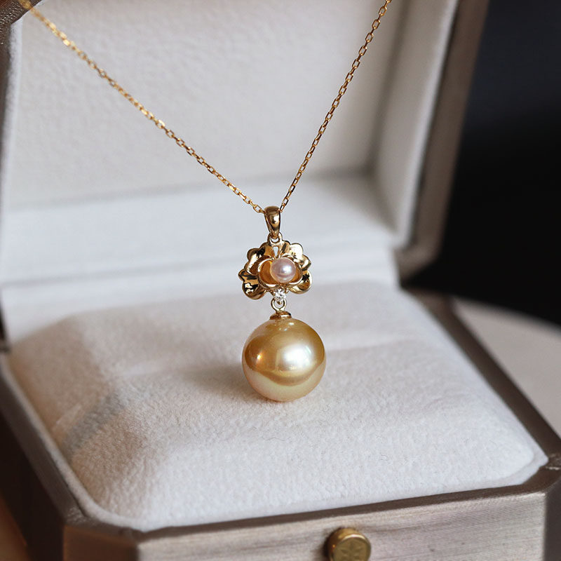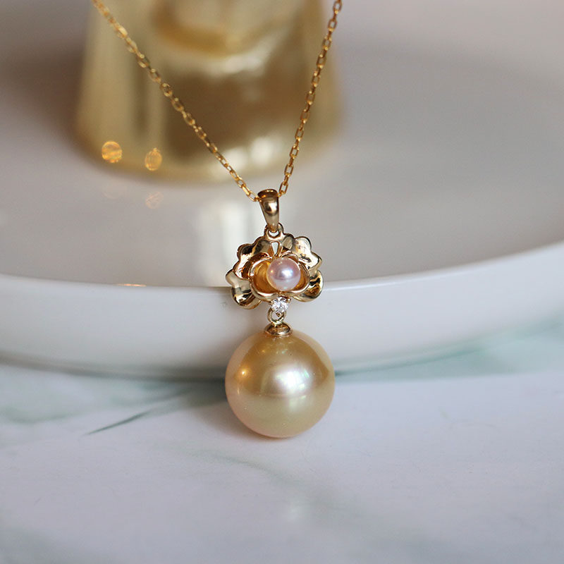 11-12mm Sleeping Lotus bloom No optimization of gold bead pendant diamond 18K gold heart pendant