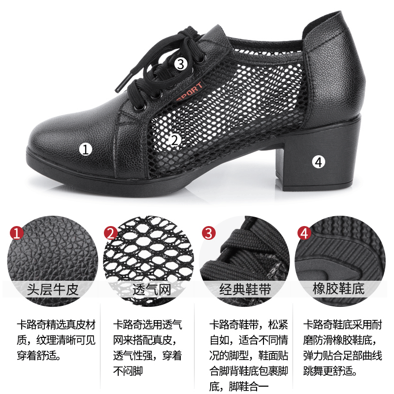 Karucci leather dance shoes breathable mesh mid heel dance shoes women's spring and summer new adult square dance shoes