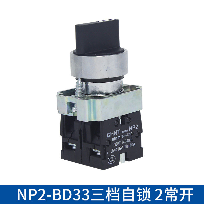 Zhengtai NP2-BD33 selector switch 22mm metal 3-bit self-locking button three-gear knob 2 normally open
