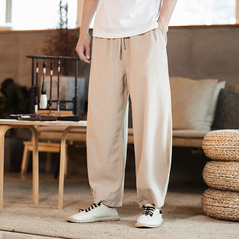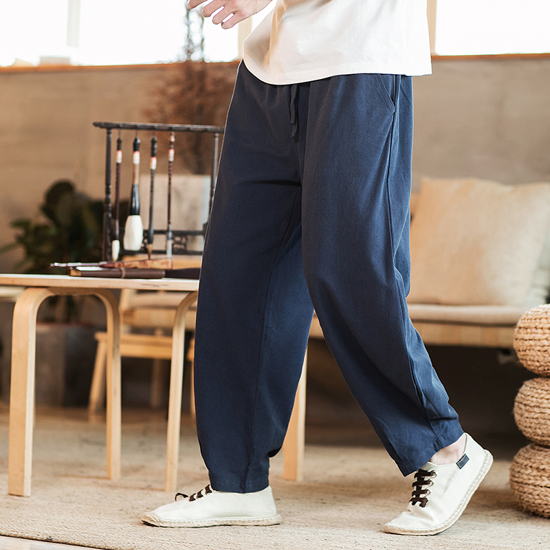 China Wind Cotton Linen Casual Pants Male loose large size Fat Son Light Cage Pants Retro Linen Long Pants Broadlegged Kharen Pants Spring