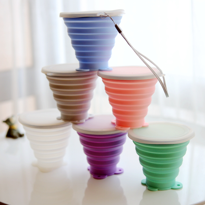 Silicone telescopic cup Outdoor travel portable folding cup Compressed drinking cup Multi-purpose mouthwash cup with lanyard