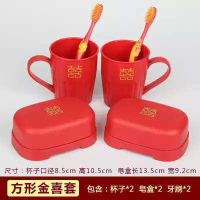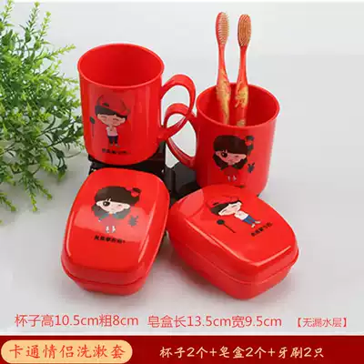 Marriage send best friend dowry plastic wash cartoon soap box Red couple Cup set mouth Cup brush toothpaste