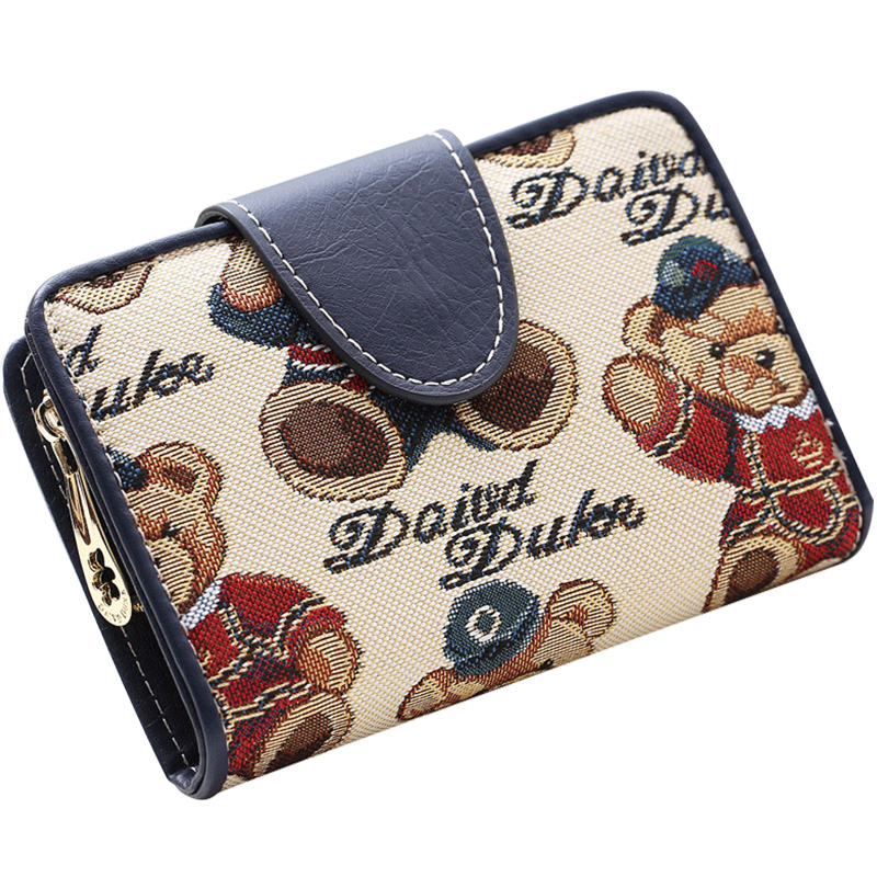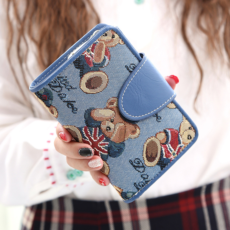 Wallet Women's Short 2021 New Cute Student Cartoon Bear Folding Simple Multifunctional Ladies Coin Purse Female