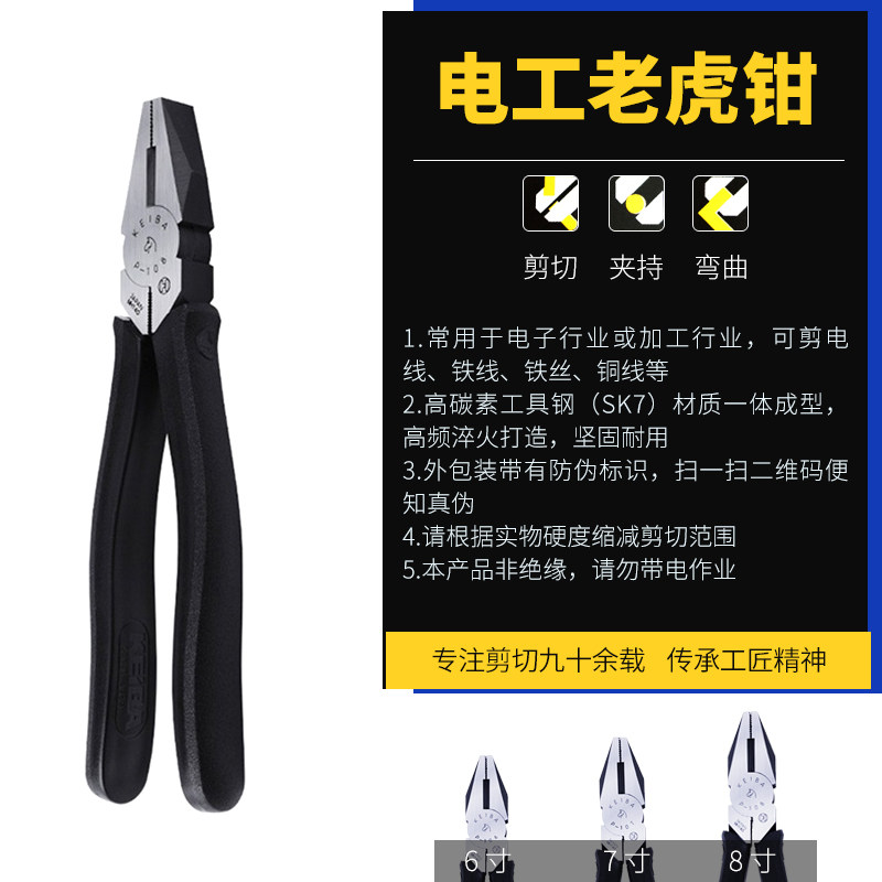 P-106 6 inch Electrician Flat Tuise Pliers 150mm P-107 7 inch Electrician Flat Tuitch 175mm P-108 8 inch Electrician Flat Tui Tui Tong 200mm SR-107 7 inch 175mm Electrician Flat Gauge Pliers (Stainless Steel Alloy Shaft Ring, Smooth Opening and Closing) SR-108 8 Inch 200mm Electrician Flat Gauge Pliers (Stainless Steel Alloy Shaft Ring, Smooth Opening and Closing)