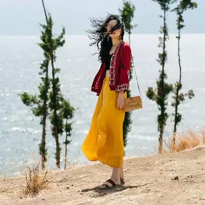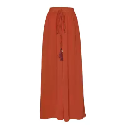 Fall feeling wide leg pants thin foreign pie nine-minute spring and summer chiffon trousers elastic waist vertical sense wide leg pants women's beach pants