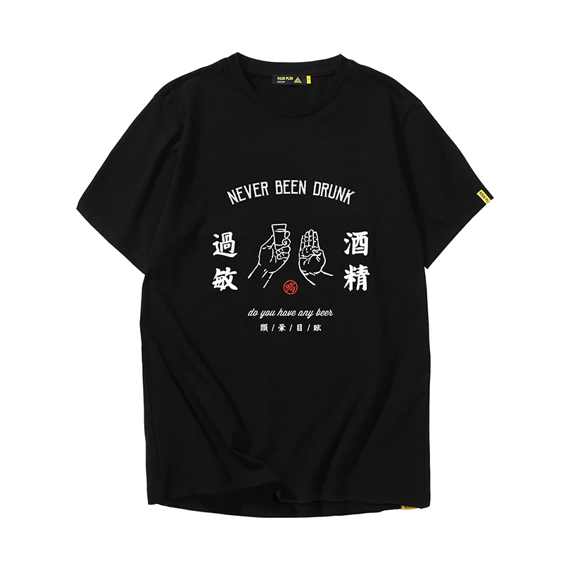 Original national tide T-shirt men's loose Chinese style retro alcohol allergy printing niche tide brand ins female couple short sleeves