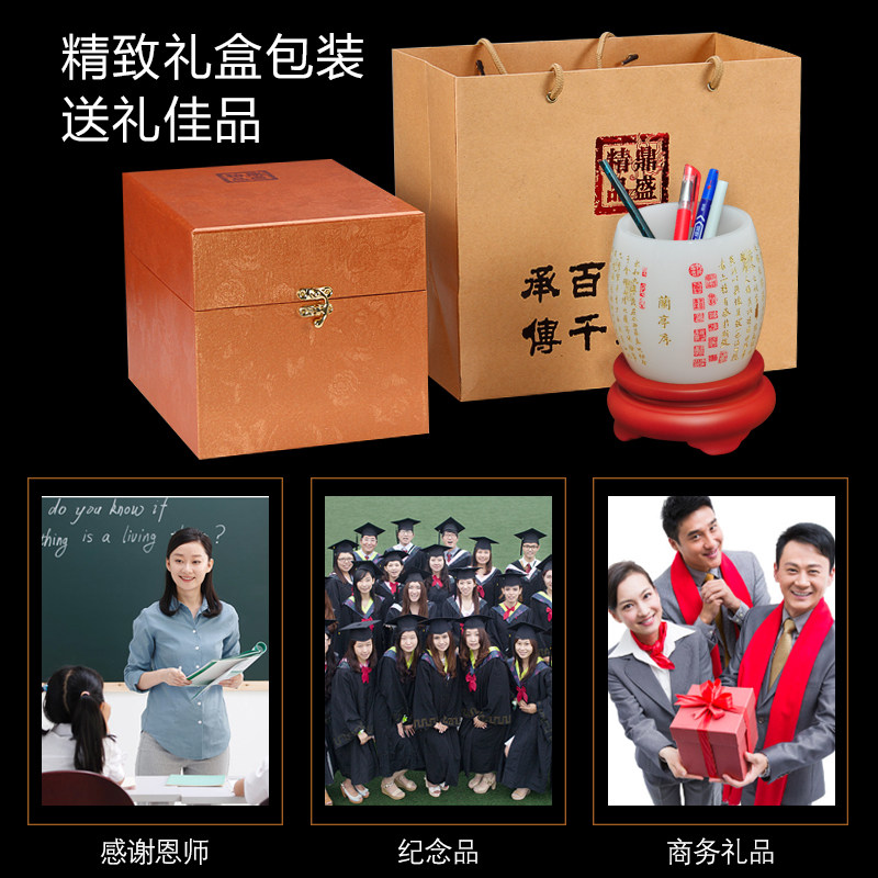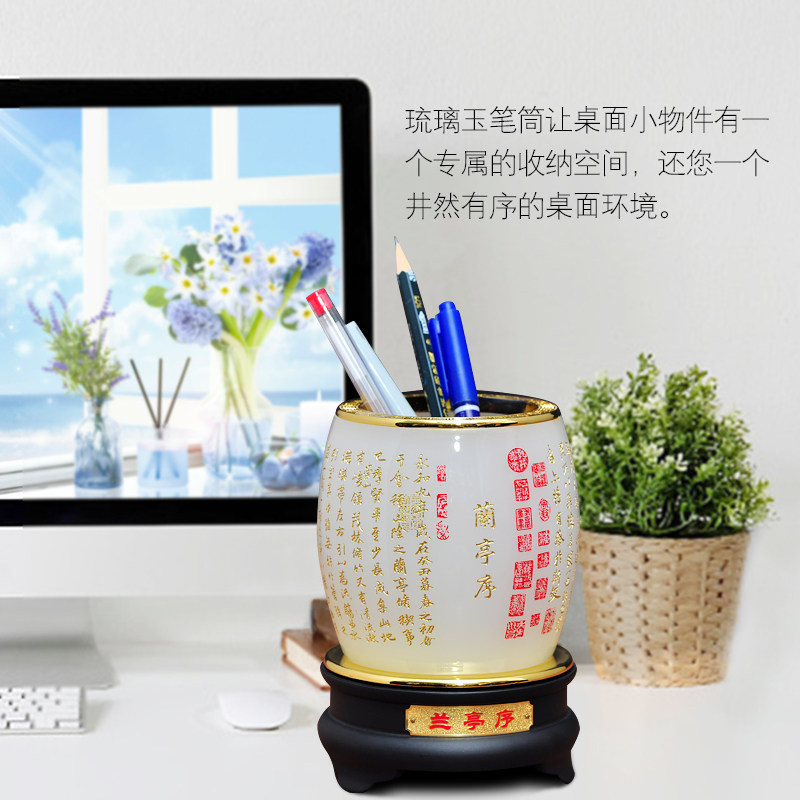 Glass jade pen holder decoration boss office practical study table storage business gift teacher's day gift