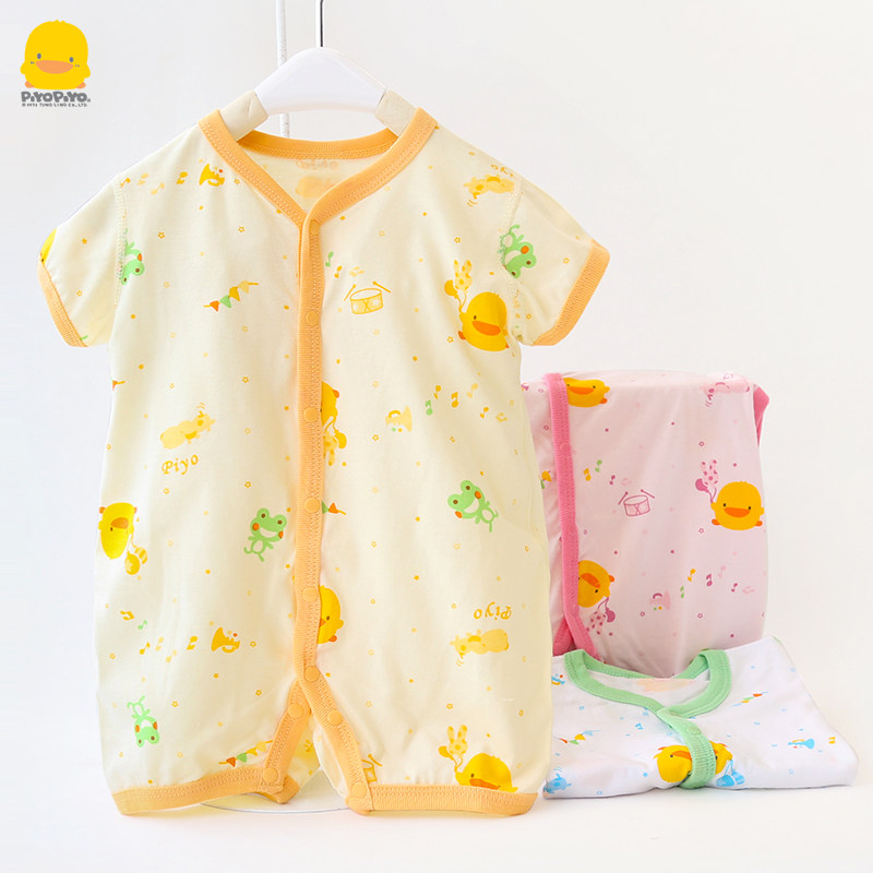 Yellow Duckling male and female baby short sleeves Clothing Pure Cotton Soft Baby 0-6-12-month Harvest Climbing Suit Summer Dress