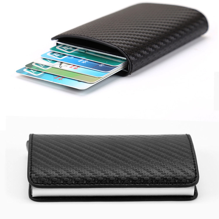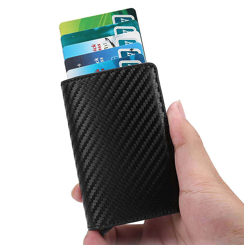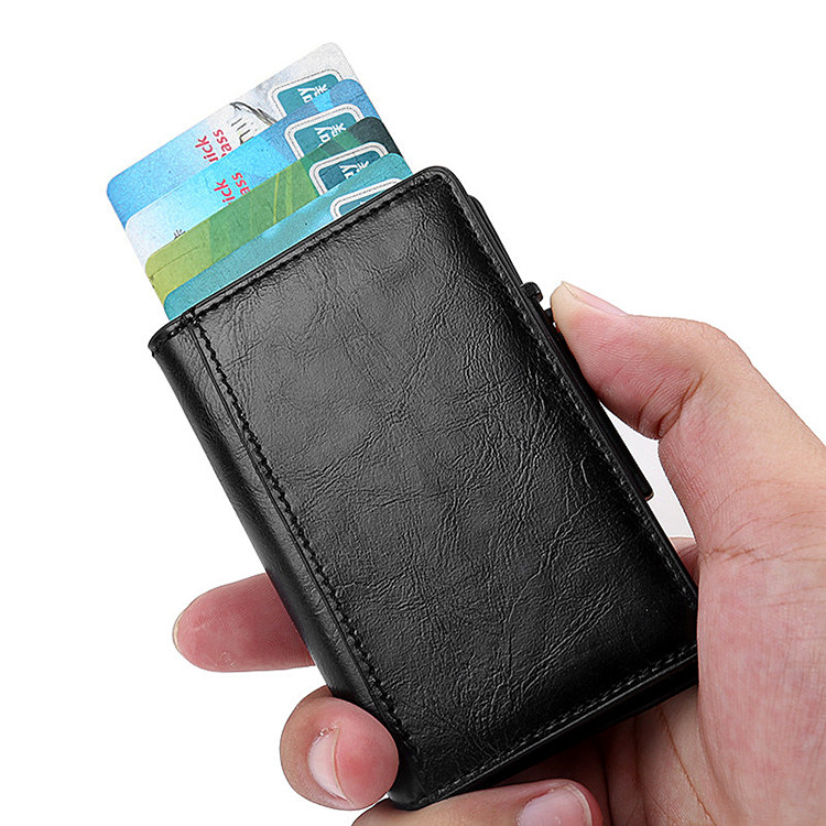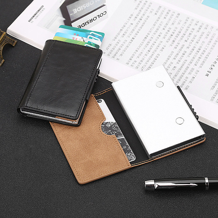 Extremely Creative Automatic Card Case New Metal Aluminum Alloy Casket Theft Protection Brushed Credit Card Clip Leather Ultra-thin Small Money Bag