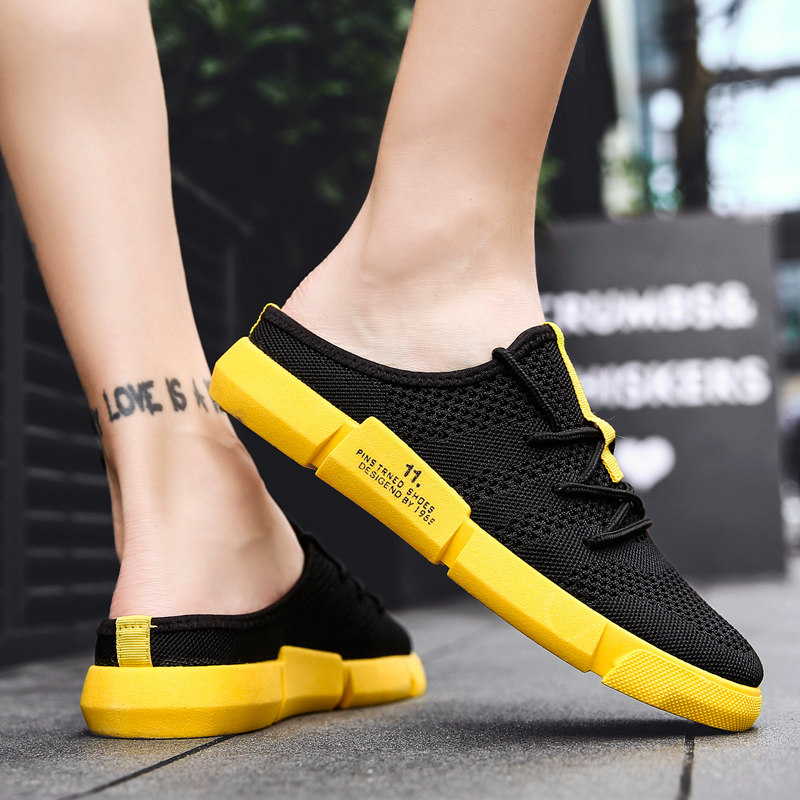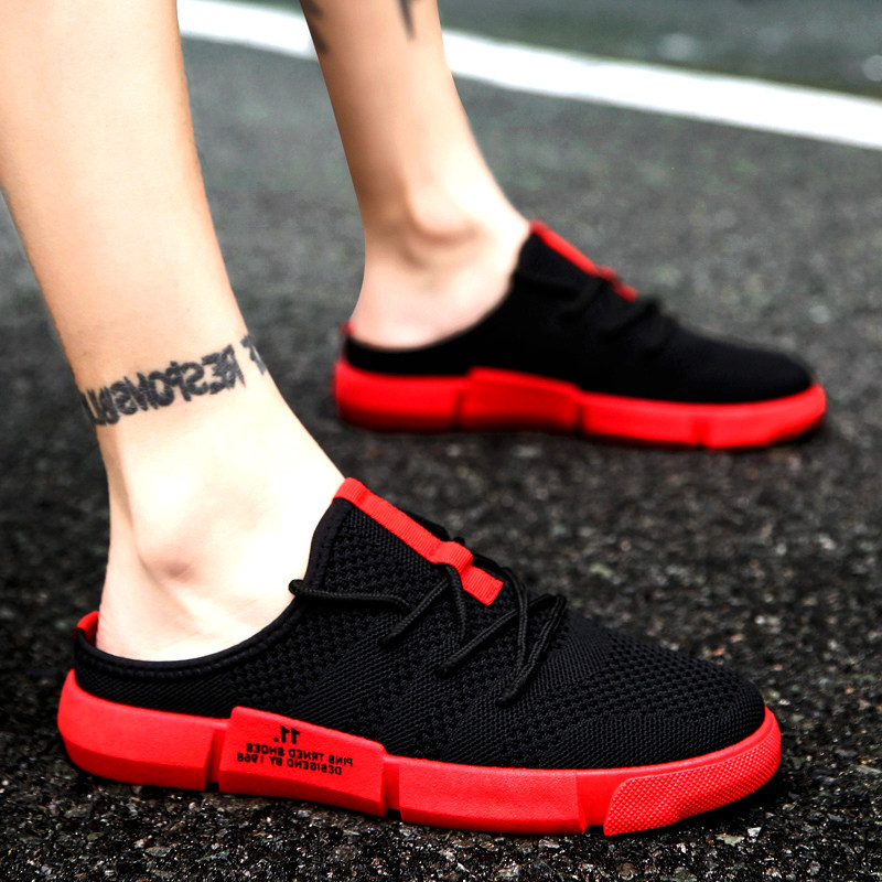 Summer slippers men's Korean version of the trend outdoor men's sandals personality drag outside wearing a lazy heel semi-slippers tide