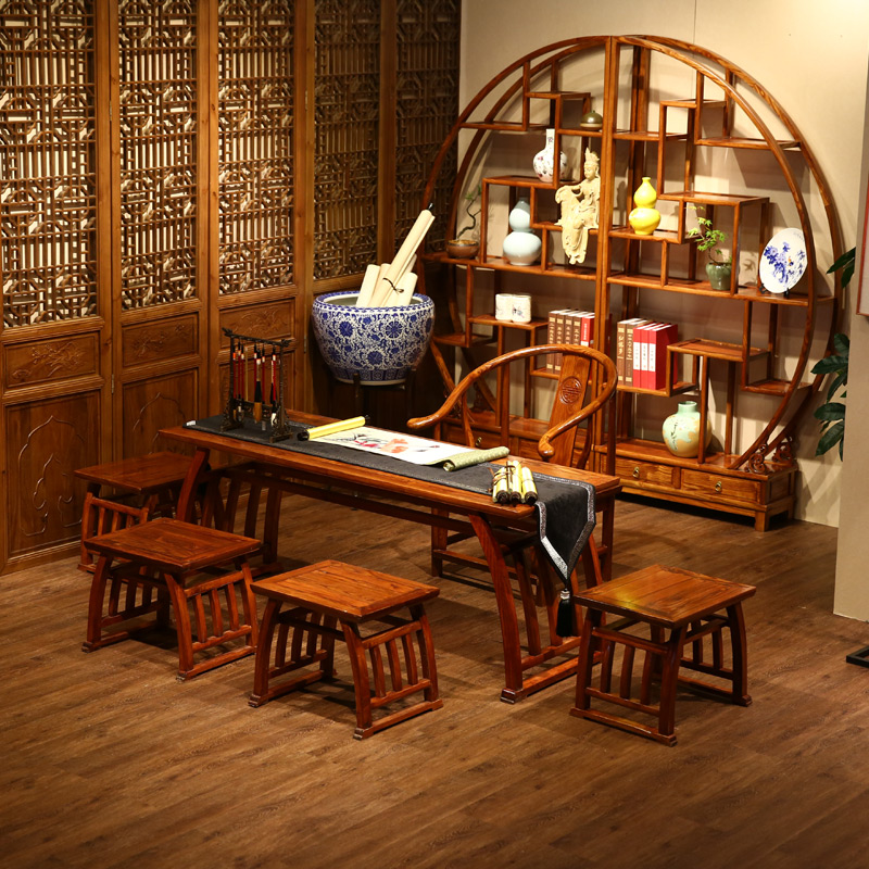 Yi Family Solid Wood Book Table And Chairs Combination Bookcase Bookcase Painting Desk Bookshelf Imitation Ancient Chinese Furniture South Elm Wood Bou Rack