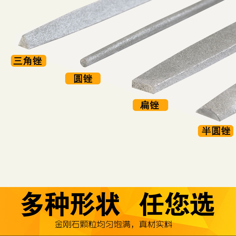 Large diamond file Metal alloy steel file Flat flat triangular semicircular jade sand dampening knife grinding tool