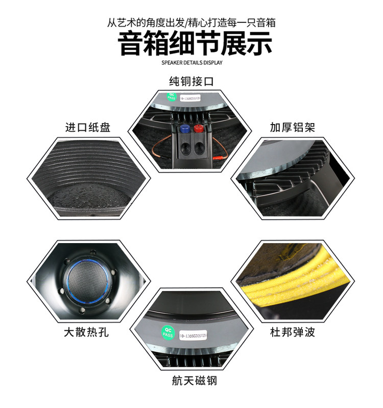 15-inch full-range speaker (mid-bass) 800W15-inch pure bass speaker (subwoofer) 900W18-inch full-range speaker (mid-bass) 1000W18-inch pure bass speaker (low