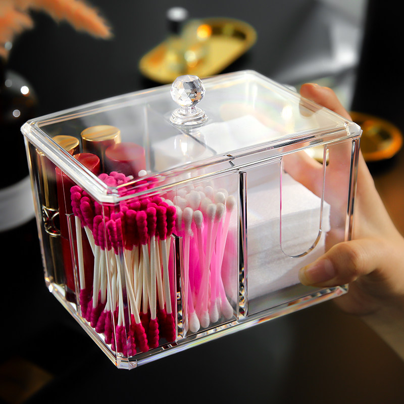 Cosmetic cotton storage box Small portable portable acrylic European dust belt lid Lipstick creative cotton sheet cotton swab box