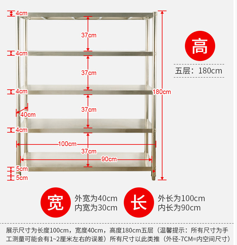 Stainless steel kitchen shelf Five-layer shelf storage shelf Floor-to-ceiling multi-layer debris finishing rack Storage shelf Bowl and plate cabinet