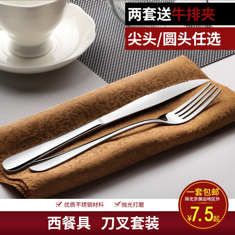 2-piece set of pointed steak cutlery and fork round ceramic plate 2-piece set of round-shaped steak cutlery and fork round ceramic plate 3-piece set of pointed steak knife, fork and spoon round ceramic plate round-shaped steak