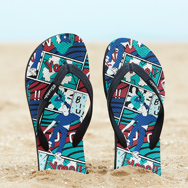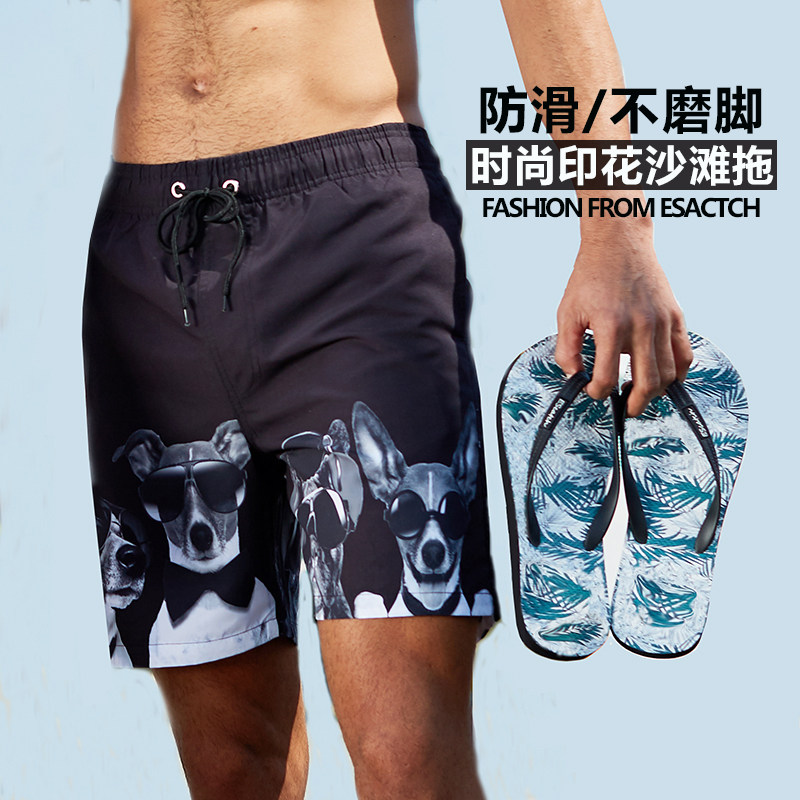 Summer men's slippers lovers herringbone drag trends printed seaside men's beach shoes Outdoor non-slip angle cool drag women