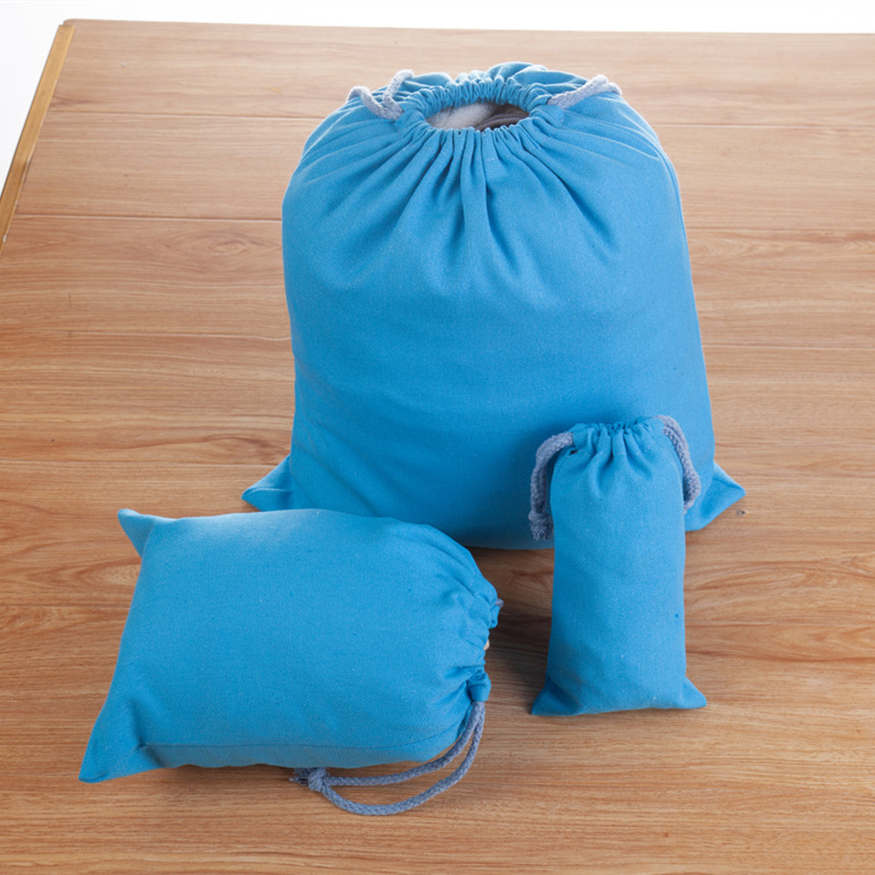 Customizable Cotton Thickened Blue Canvas Drawstring Pocket Travel Clothes Organizer Drawstring Cloth Bag Underwear Storage Bag