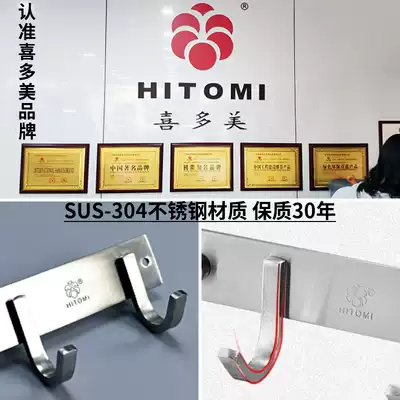 Kitchen adhesive hook hook 304 stainless steel toilet clothes door rear non-perforated wall hanging hook space aluminum adhesive hook