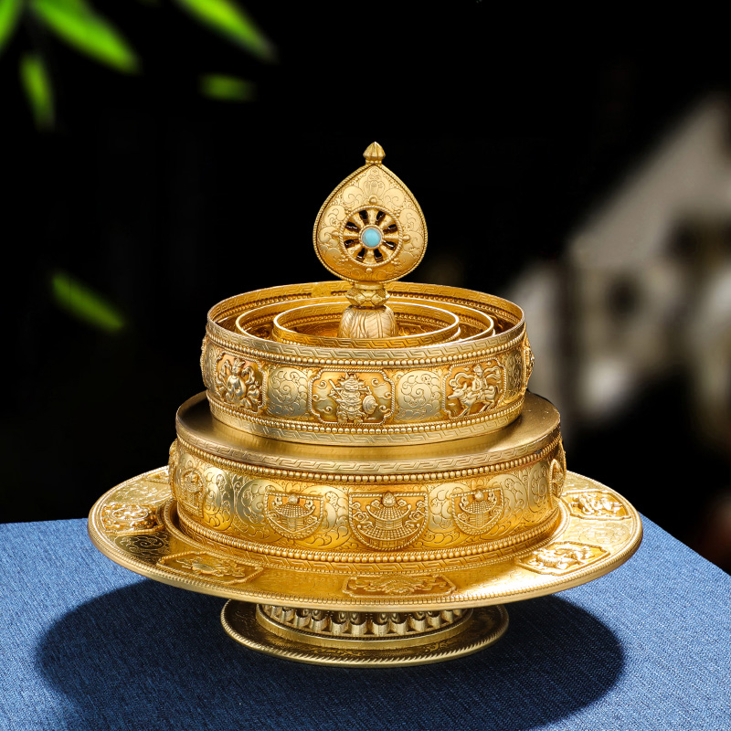 Tibetan mandala pure copper imitation Nepal eight auspicious carving full set of repair for mancha luo repair plate for Buddha manda plate