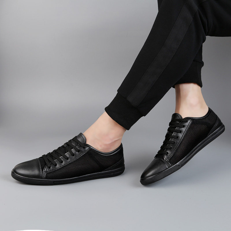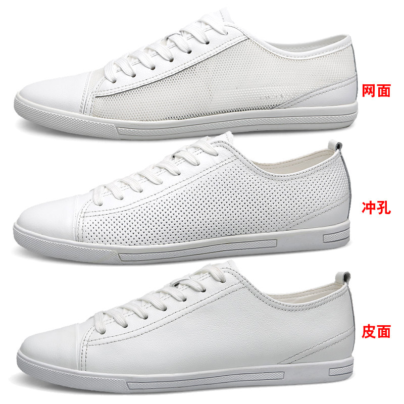 Men's shoes summer mesh panel shoes men's trend sports casual shoes men's leather Korean version all-match breathable white shoes deodorant