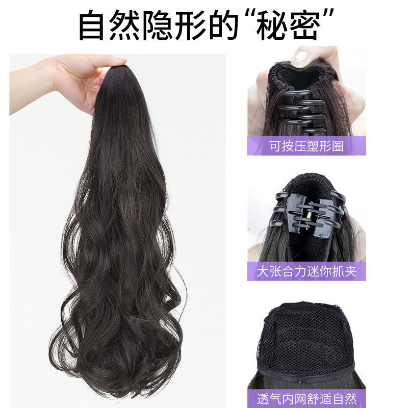 Net red wig female grab clip long curly hair wig ponytail pear flower roll large wave clip ponytail wig braid