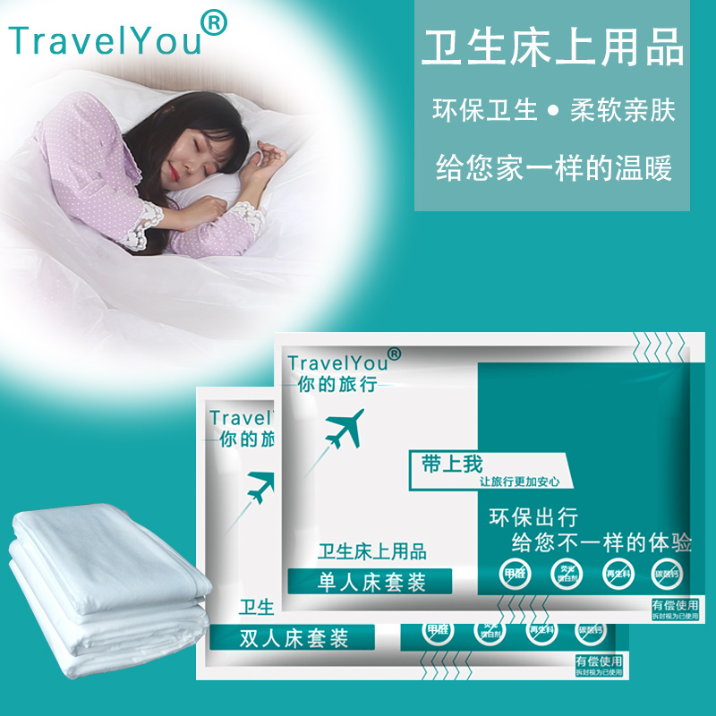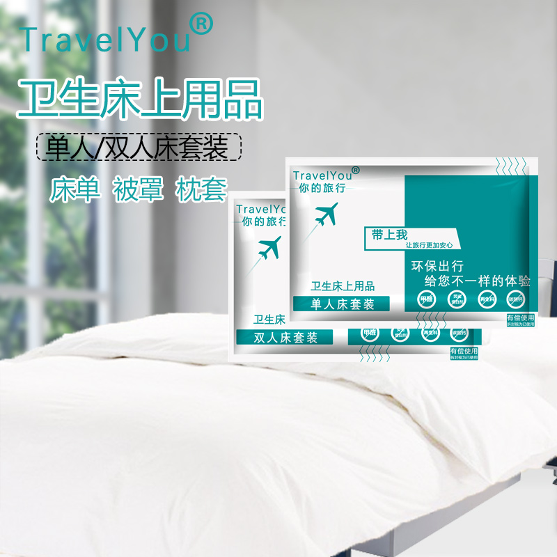 Travel disposable sheets, quilt cover pillowcase tourist double four-piece set hotel dirty supplies quilt cover towels bath towels