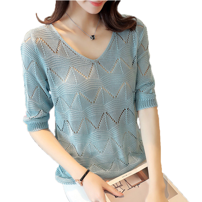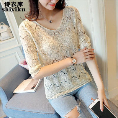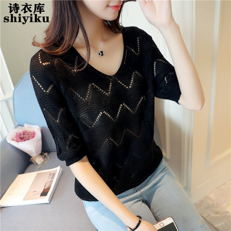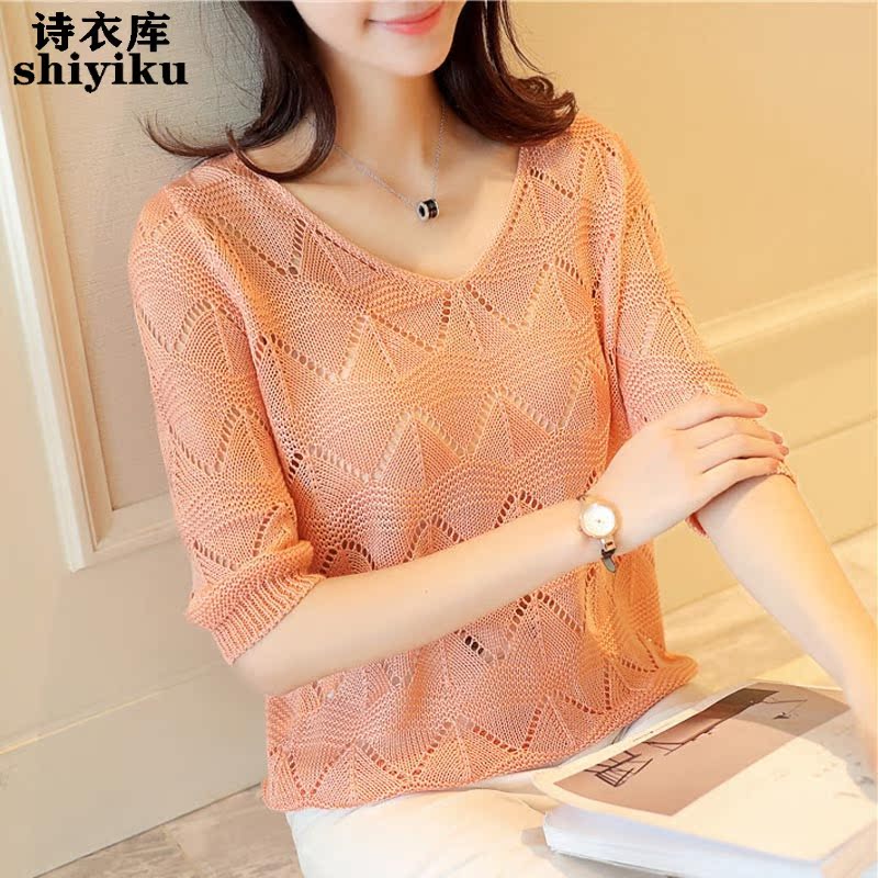 T-shirt women's hollowed-out knitted sweater top 2022 summer new mid-sleeve knitted bottoming shirt thin section t-shirt blouse tide