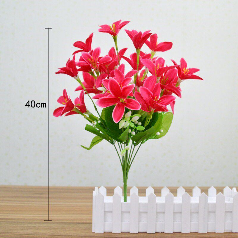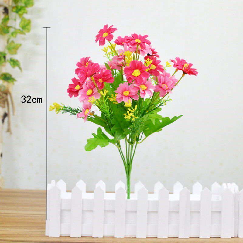 A bouquet of red daisy, a bouquet of orange daisy, a bouquet of purple daisines, a bouquet of white daisines, a bouquet of red small lilies and a bouquet of yellow little lilies.