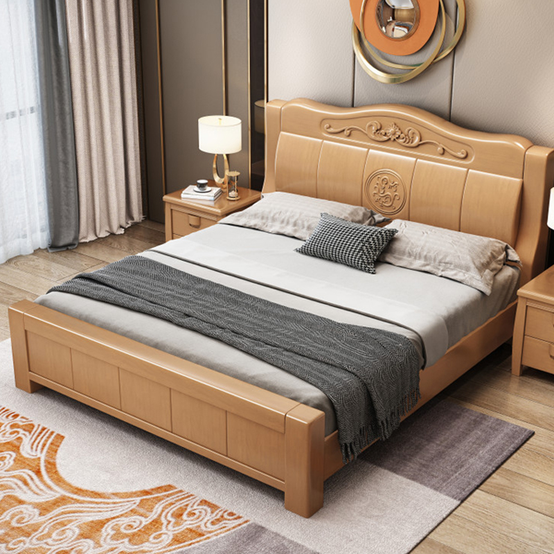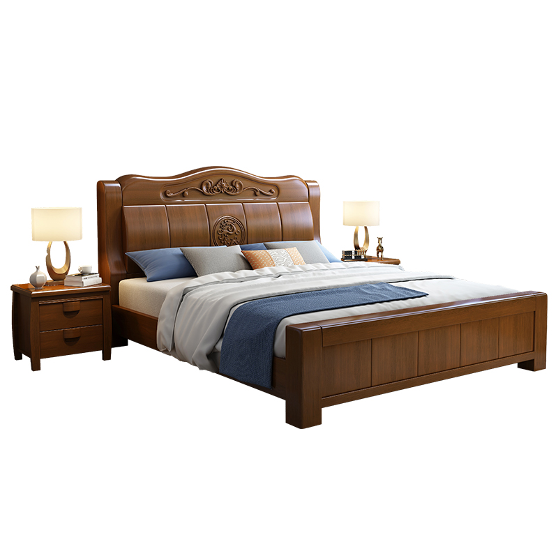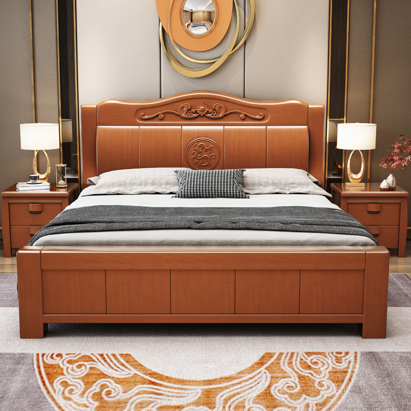 New Chinese style solid wood bed 1.8m 1.5m double bed economy simple modern furniture master bedroom storage wedding bed