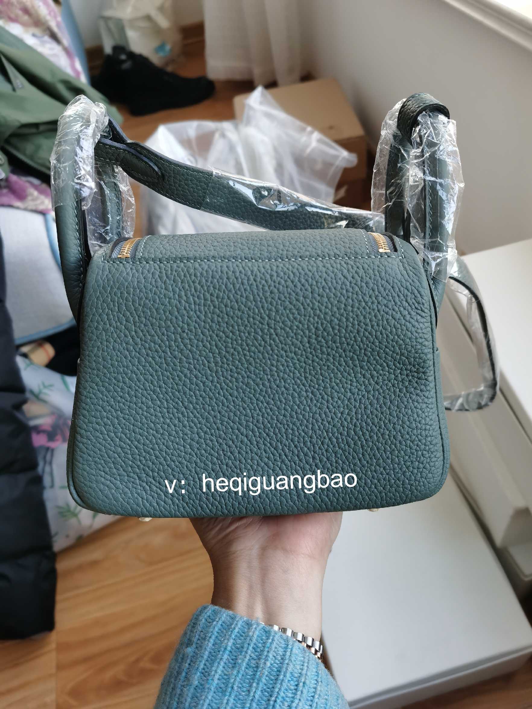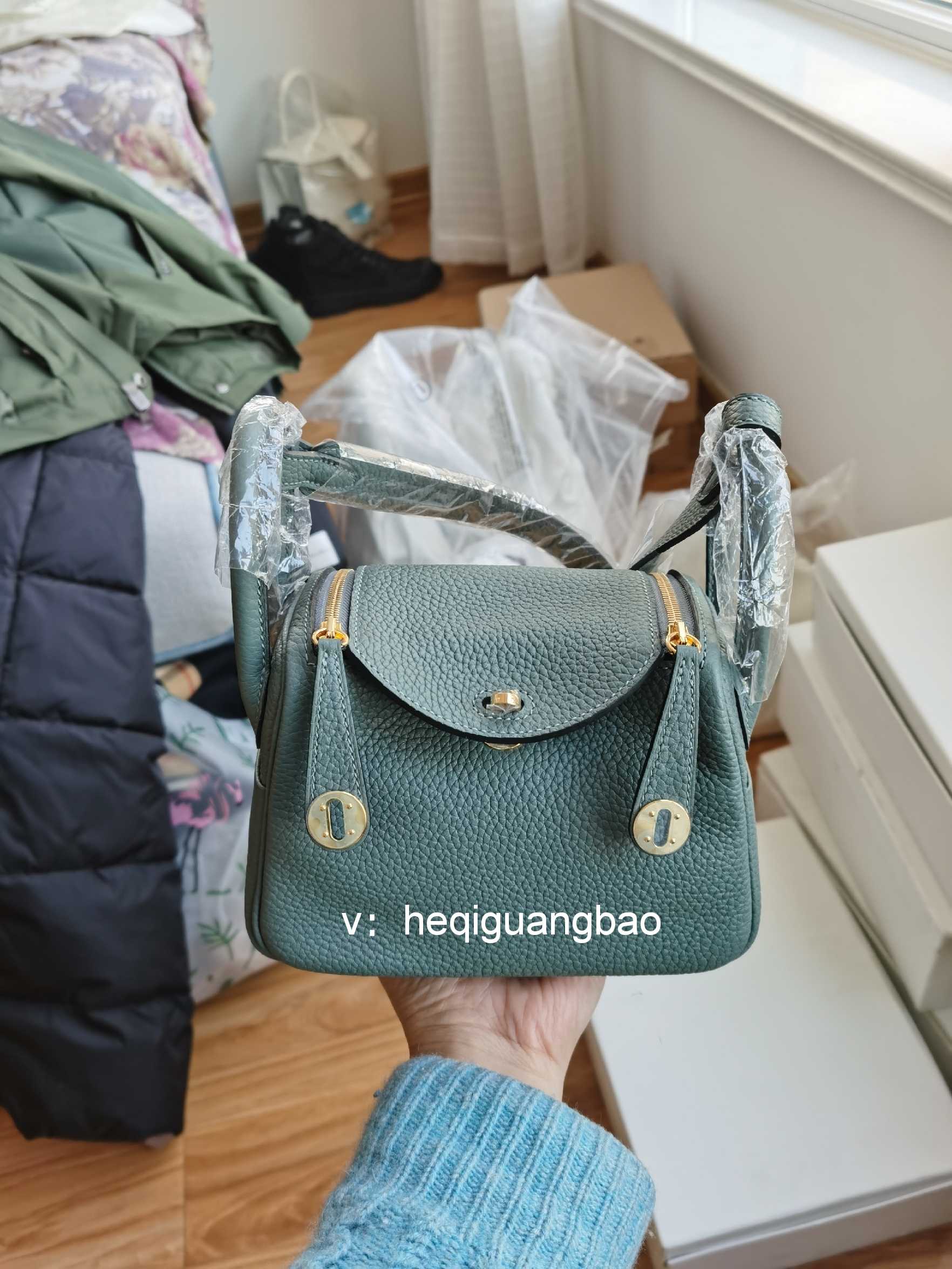 Mini Lindi original tc leather French wax line full hand-stitched almond green elephant gray multi-color shoulder messenger bag in stock