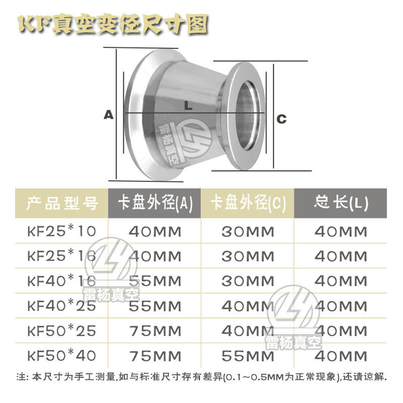 Leyan Vacuum Head 304 Stainless Steel Fast Fitting Diameter Speaker Speaker Converter Converter KF16 25 40