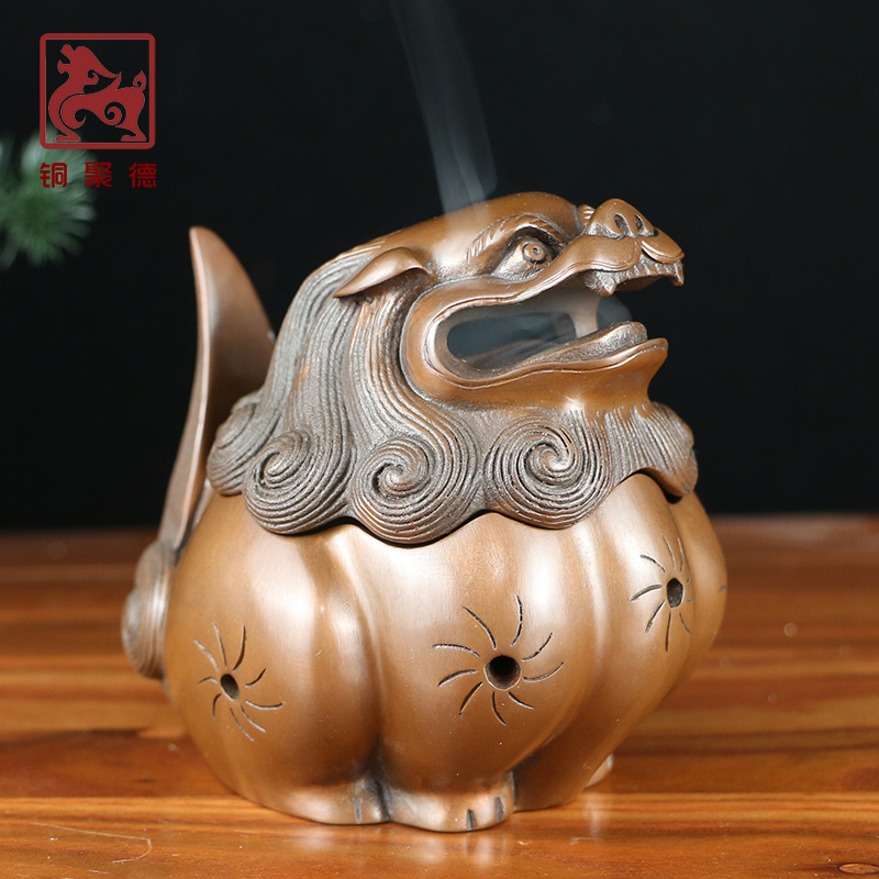 Copper Jude pure copper Tang lion roaring incense burner antique household indoor incense road supplies ring incense Pixiu aromatherapy burner