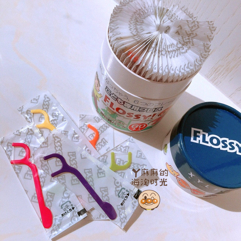 Japan Flossy young children's baby dental floss special safety thin dental floss stick independent pack 6 kinds of fruit flavors 60