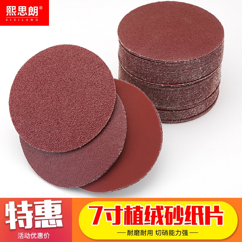 7 Inch Flocking Sandpaper Sheet Self-Adhesive Sandpaper Polished Corner Mill Pull Down Sheet Round Sandpaper Carpentry Polished Polished Sheet