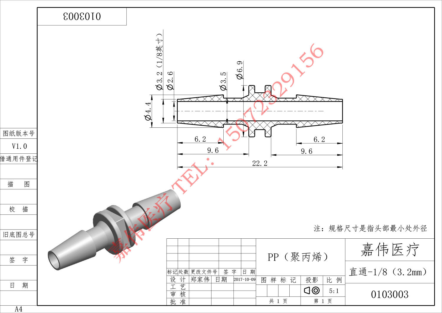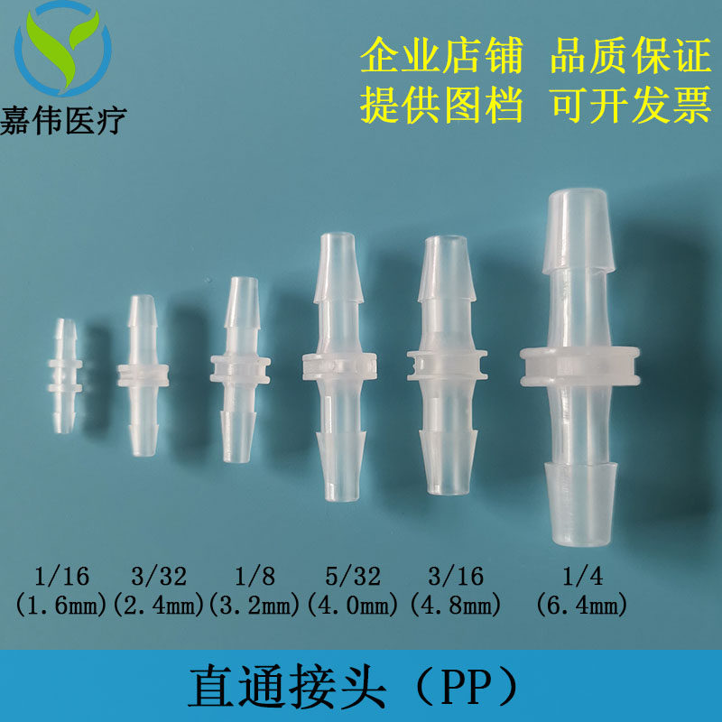 Pagoda straight-through joint plastic PP material polypropylene precision molding imported hose and other diameter Ertong medical gas nozzle