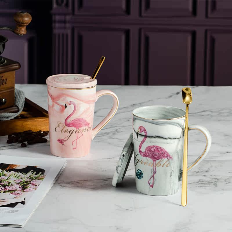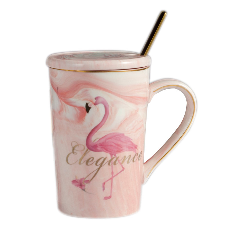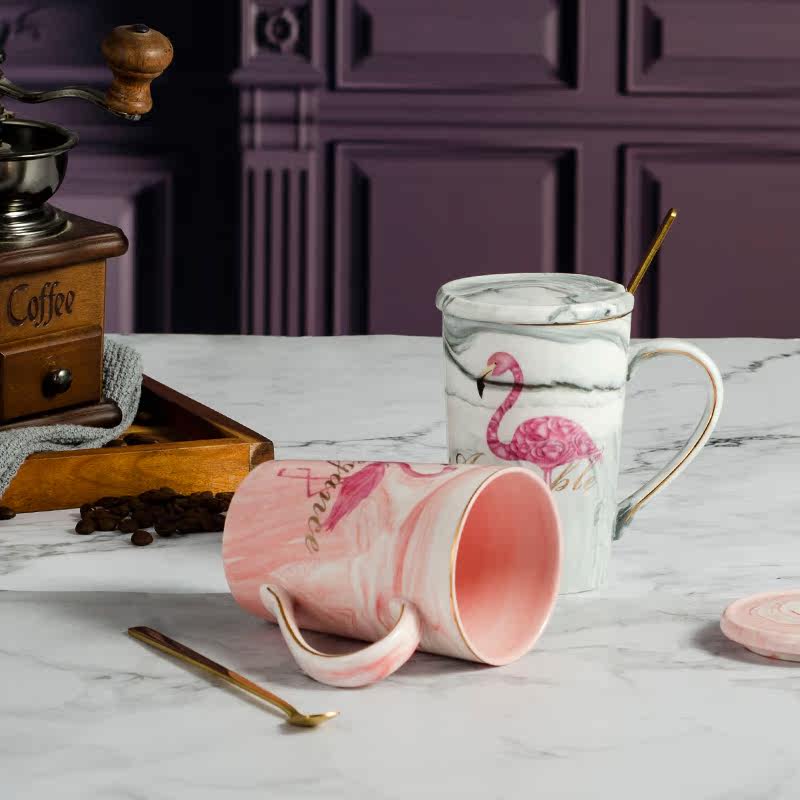 Mark cup ins marble tattooy lovers water glass with lid spoon Creative flaminoso Teenage Milk Coffee Cup