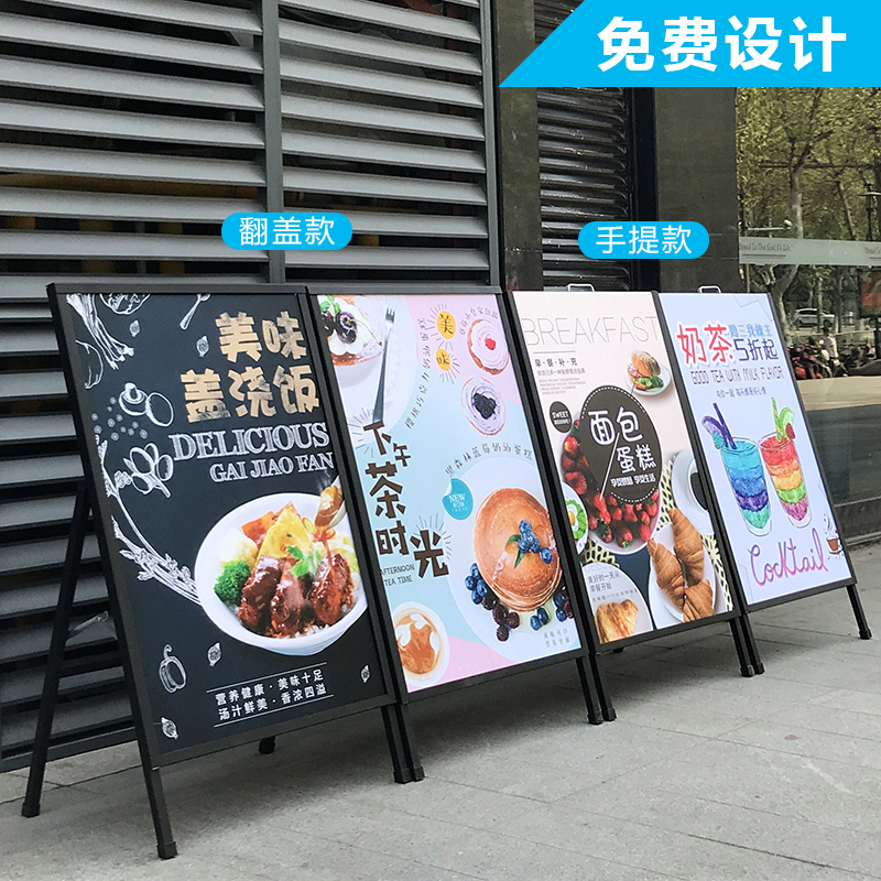 Portable outdoor display frame Iron Poster Holder Fold-sided Billboard Floor Standing Signs KT Board Exhibition Shelf