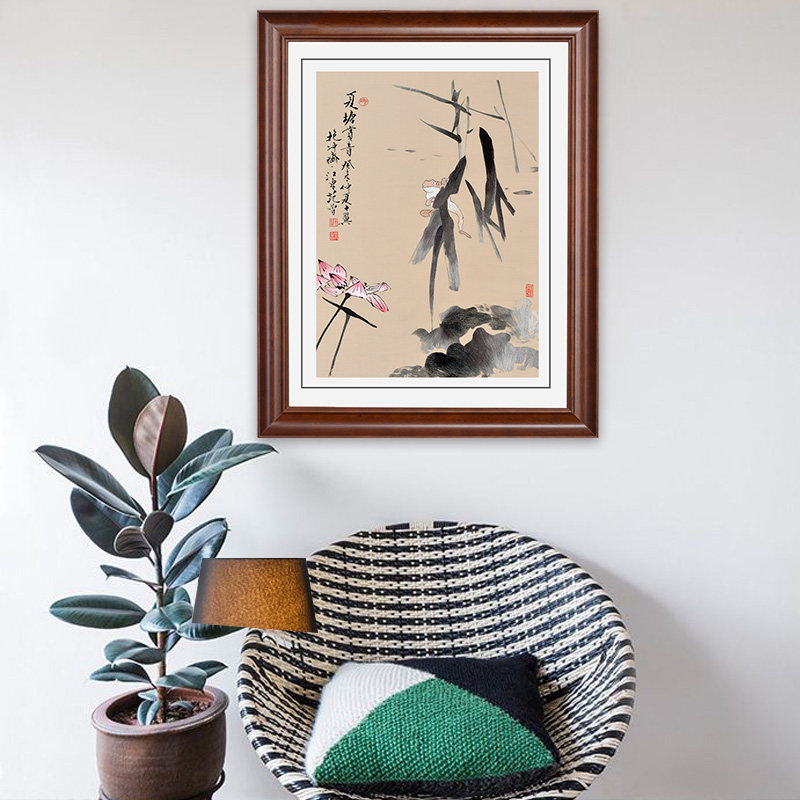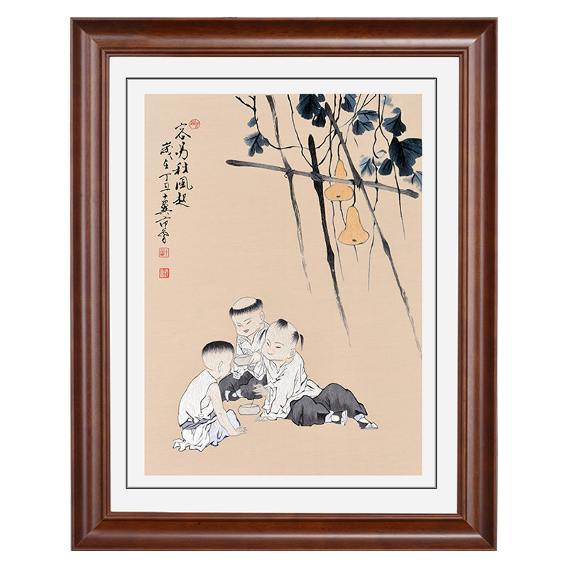 Golden Wu Pin Su embroidery finished product hanging drawing room China Wind book house Zen willpower pure handmade embroidery decoration painting childlike plinth