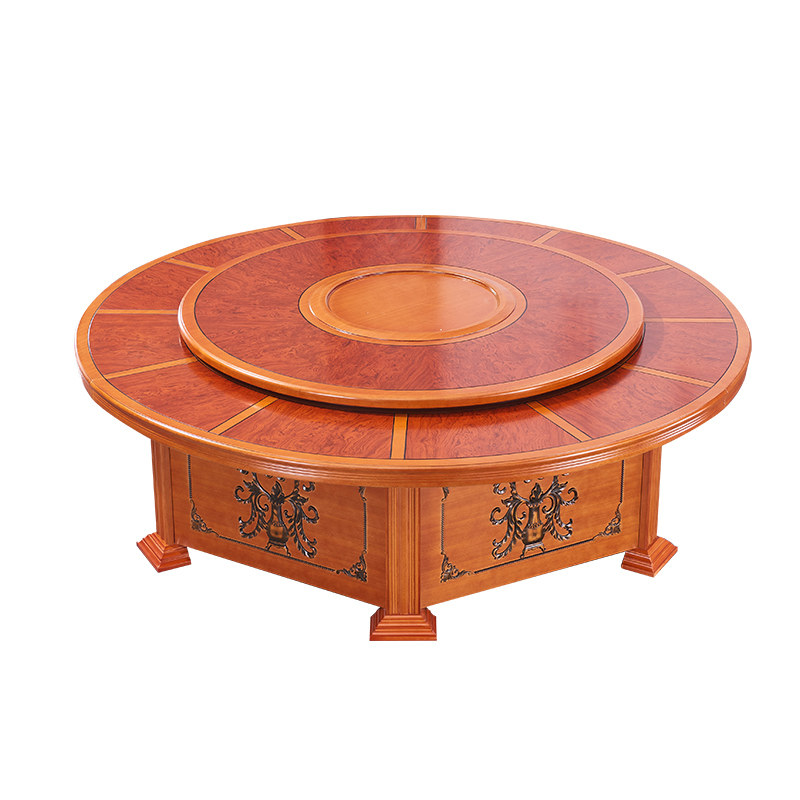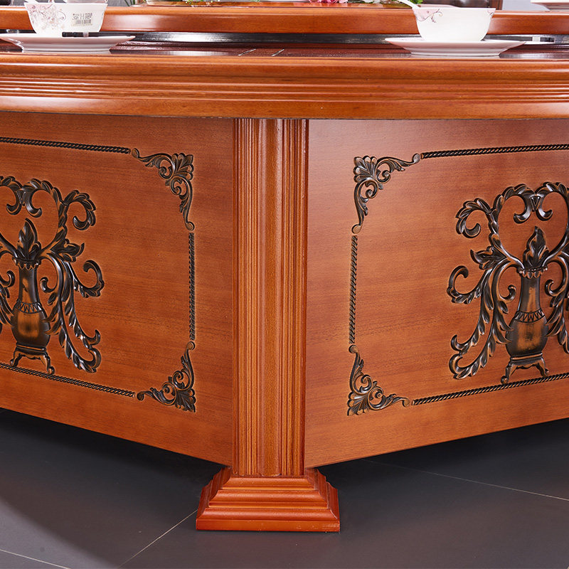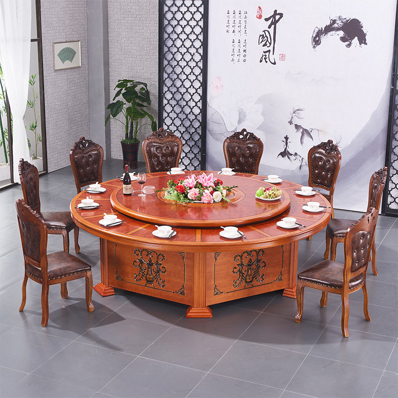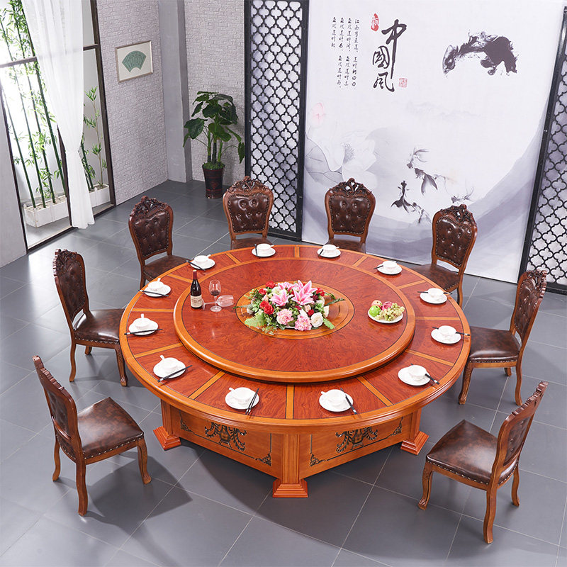 Hotel Electric Dining Table Large Round Table Solid Wood Dining Table And Chairs Composition 15 People 20 People Round With Turntable Hotel Hotpot Table