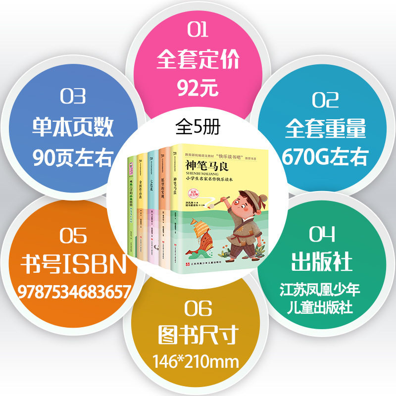 Happy reading The next book of the second grade must read the magic pen Ma Liang seven-color flower big head son small head father all 5 volumes