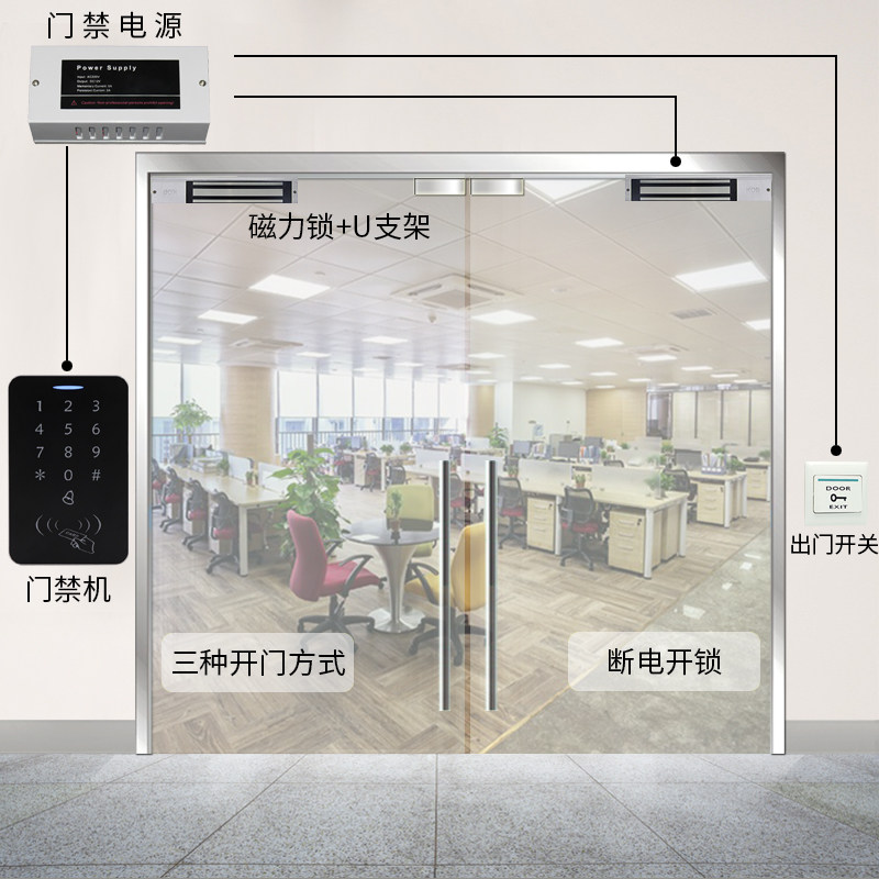 Access control system all-in-one machine electromagnetic lock double door glass door iron door office swipe card electromechanical plug lock wooden door set